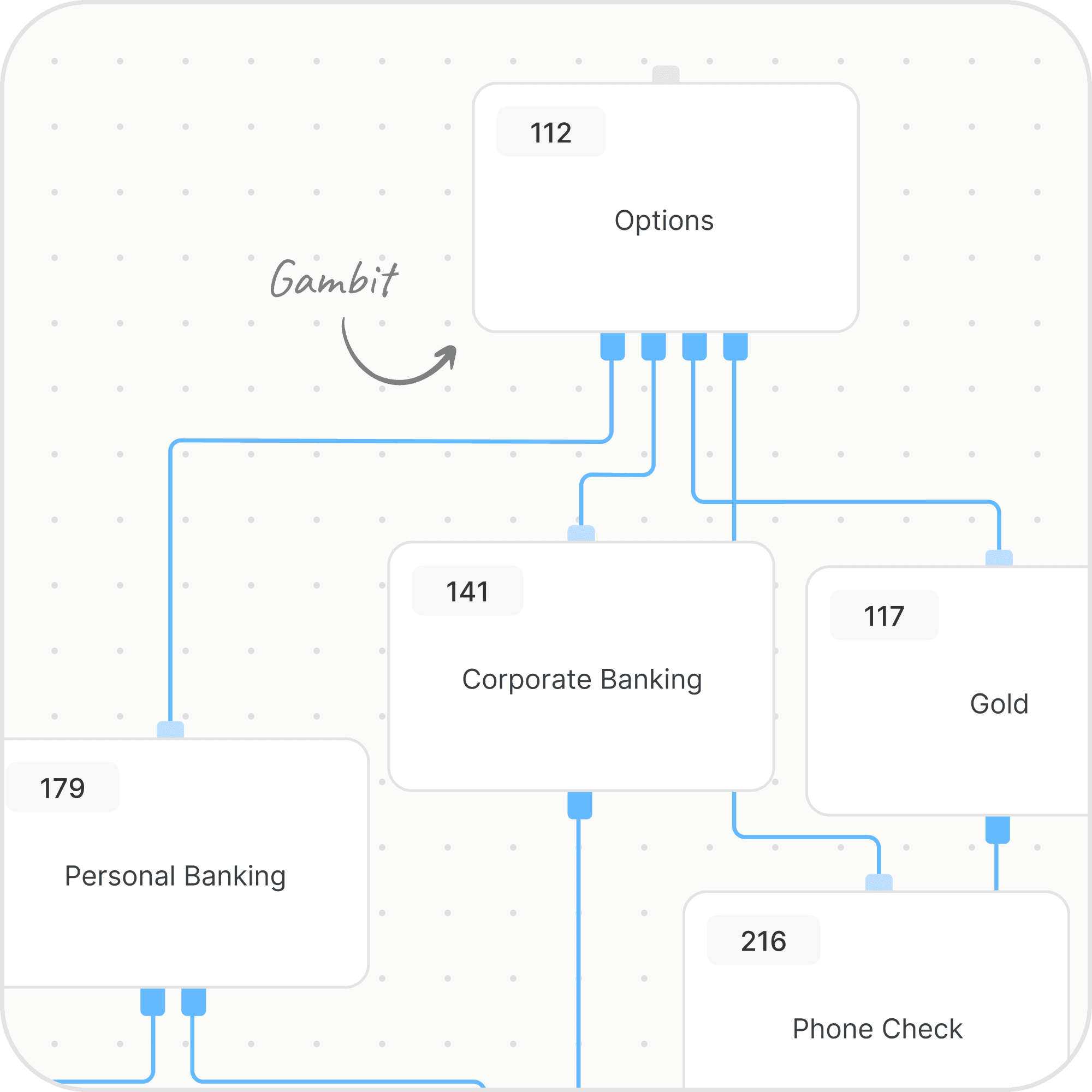A simple customer service bot might have 20 gambits. An enterprise banking chatbot on the other hand could have 500, each connected through branching paths, button or card inputs and live API calls.