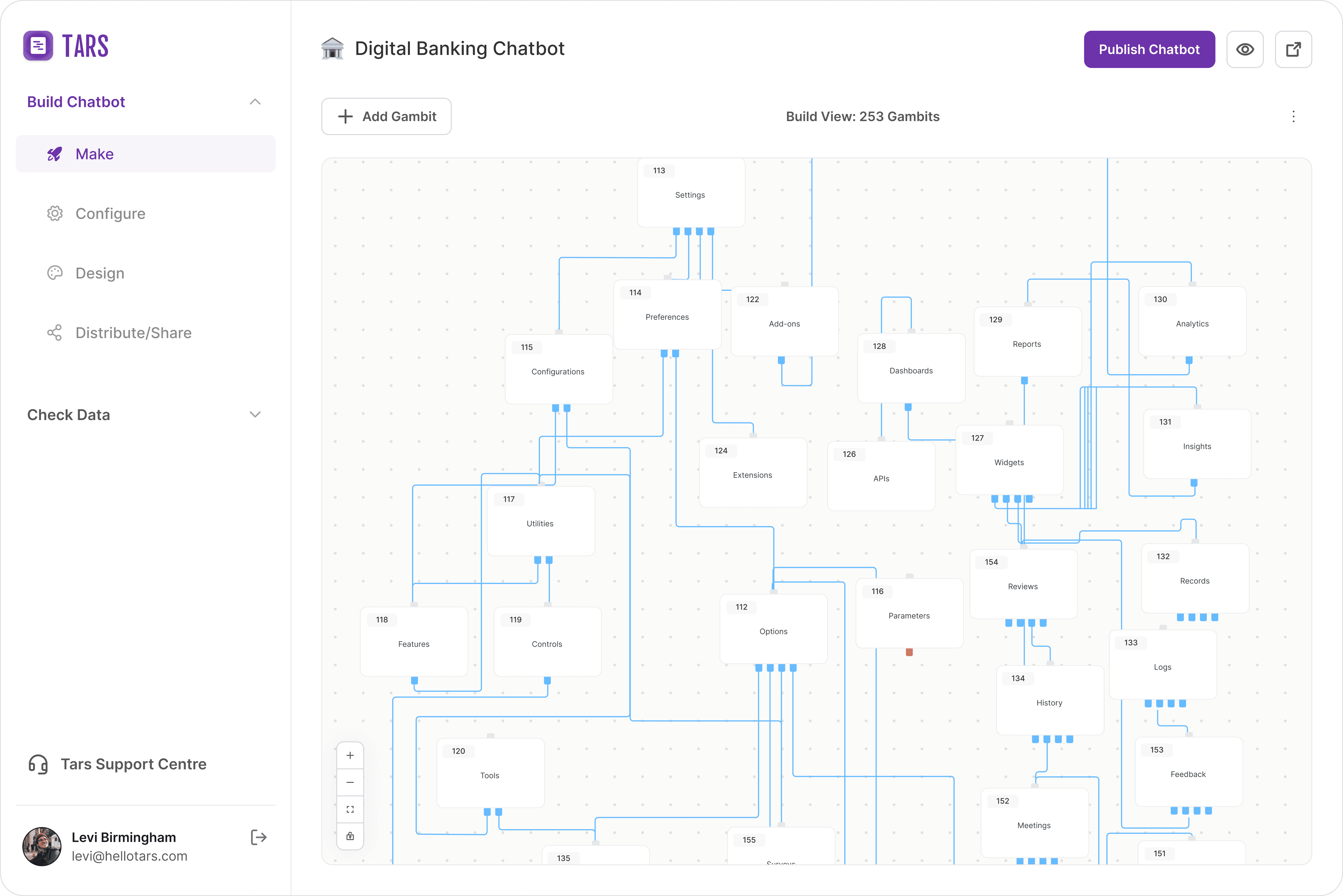 Tars is a bootstrapped B2B startup building enterprise AI Agents for clients across banking, insurance and healthcare. The product is a visual builder, think of it as a flowchart editor where each node is a single conversational turn. Tars calls these nodes gambits.